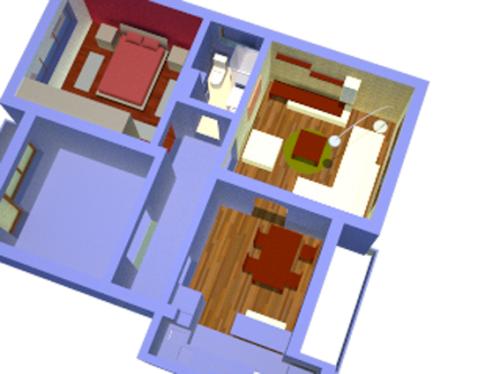 Meine Wohnung hat zwei Stock. Es hat eine Küche, ein Bad, und zwei Schlafzimmer mit einen Balkon jeder. Die Wände sind gelb. Im Erdgeschoss ist das Wohnzimmer und Esszimmer. Daneben ist die Bad. Links ist meine Küche und Waschraum. Oben sind zwei Schlafzimmer. Rechts is mein Schlafzimmer und die andere ist für meine Mutter oder Kusin. Beide Zimmer sind ruhig, hell und hoch.